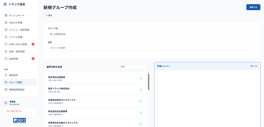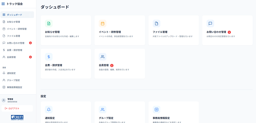 事務局管理画面(管理者用)