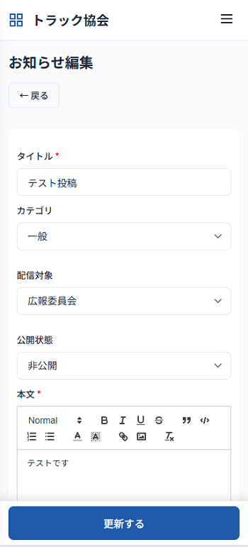ITに不慣れな会員でも使いこなせるシンプルなUIを採用。リッチテキスト編集やバッジ通知で、情報の「見落とし」を防ぎます。