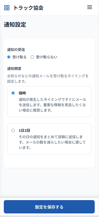 | 通知設定 | システムからの通知(お知らせやイベント等)の受信設定 | 自分のニーズに合わせて、必要な通知を確実に受け取れるよう調整できます。 |